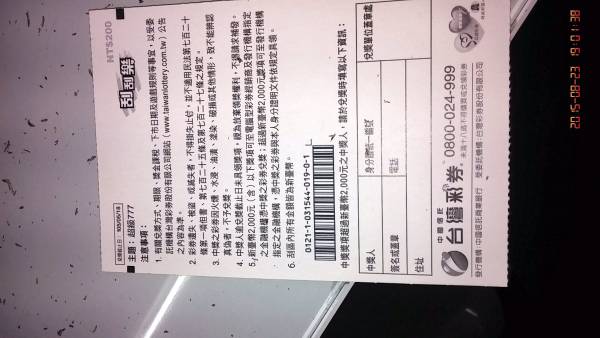 這張也是中1400元,可是忘記拍正面了真是難得一見的好文,收下囉~