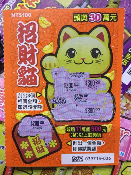 討論版列表 » 刮刮樂討論版 » [分享] (09-04) 2015.9.3. 〈招財貓〉之三隻小貓喵喵喵