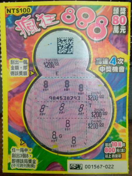 右邊22號 滿少人刮的,但一直有中獎機會50% 拿到800元以上獎金