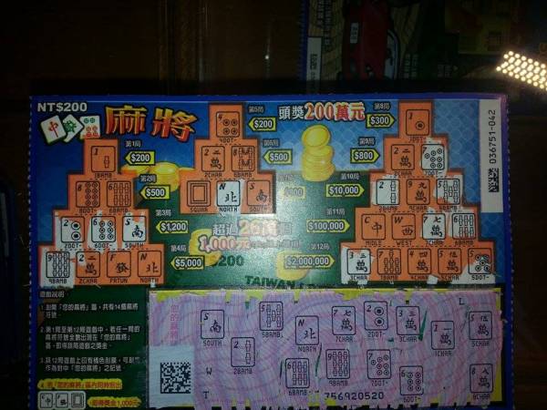 討論版列表 » 刮刮樂討論版 » [分享] (11-17) 新麻將!!(TWL)與(THR) 早上去刮!