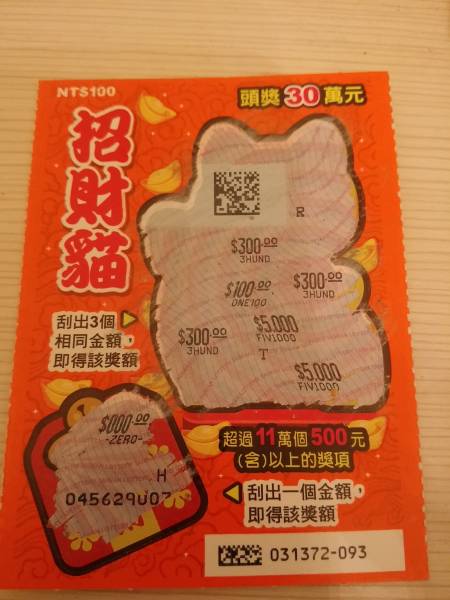 你那張沒有太大特別 看右邊93號以前都有拿過300元以上獎金!