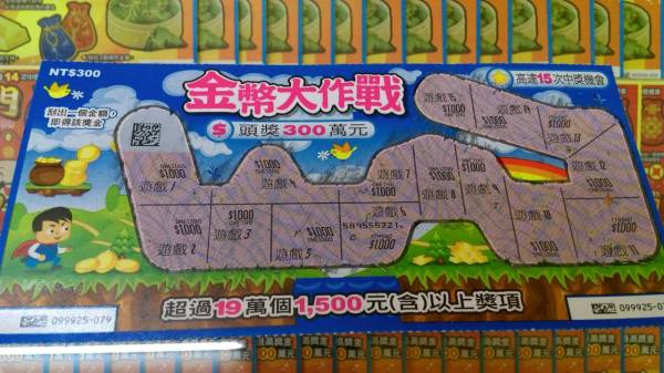 「金幣大作戰」每張新臺幣300元正、每本100張。