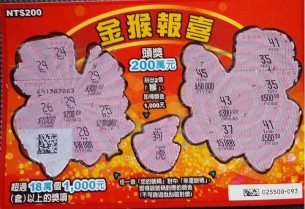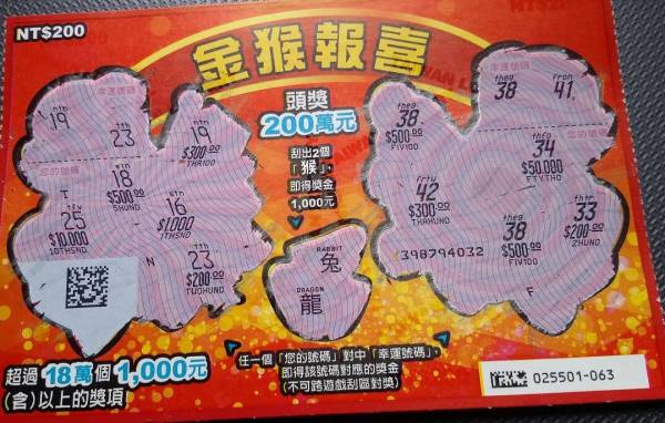 討論版列表 » 刮刮樂討論版 » [分享] (01-04) 金猴報喜FTN之2連發 回應本話題 發表新話題