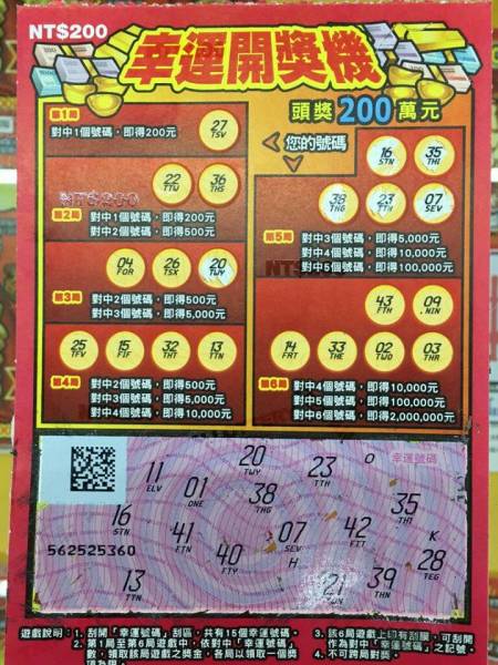 37號中獎100000元 (每十個30~40號連號有三張的中獎機會)