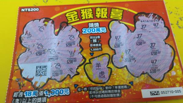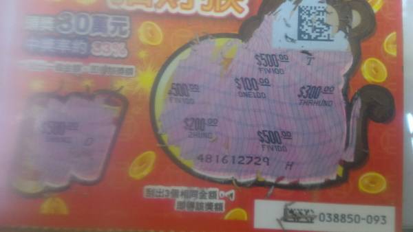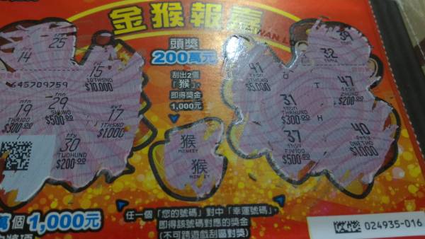 金猴報喜的編號左邊發財流水號藏1000元以上高獎金機率(看教學圖參考)