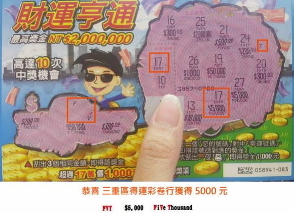 083號> 中5000 元1次(中獎機率30~40%)(十張連號內有三張高於1000元) 新北市三重區 得運彩卷行獲得