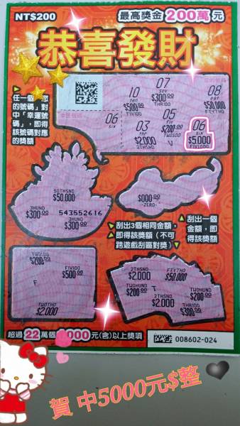 [分享] (03-17) 恭喜發財1張 命中5000元