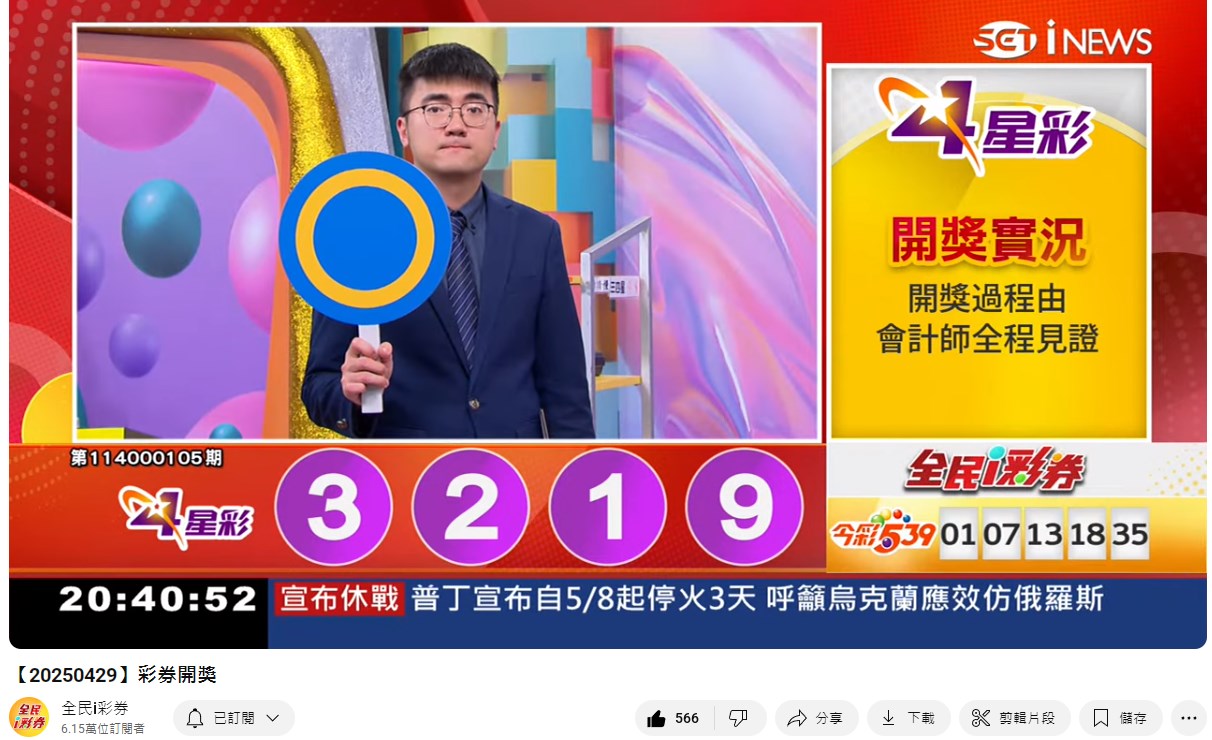 114年4月25日彩券開獎 來自全民i彩券YT [三立新聞網SETN][4月26日重播]