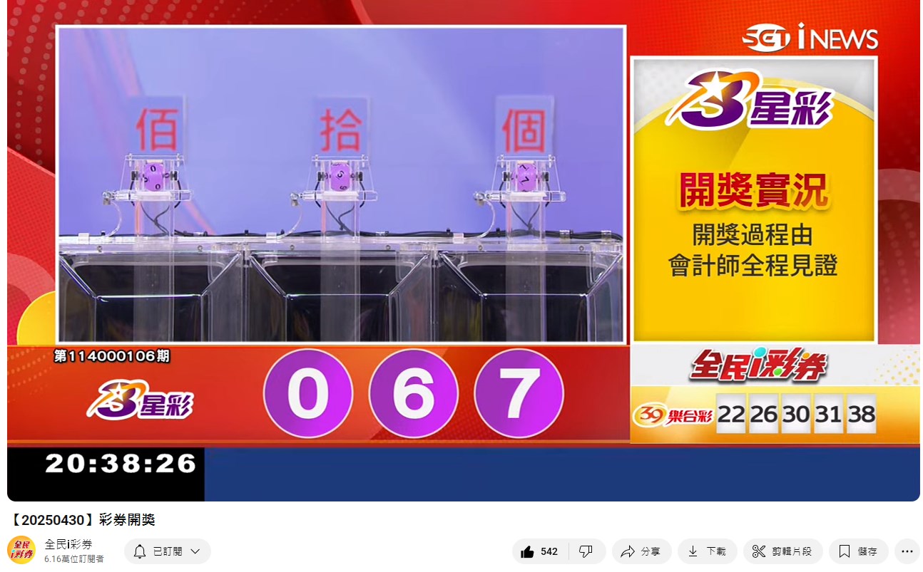 專區【全民i彩券】台灣彩券開獎實況轉播 威力彩、今彩539、三星彩、四星彩 |三立新聞網 SETN.com - YouTube