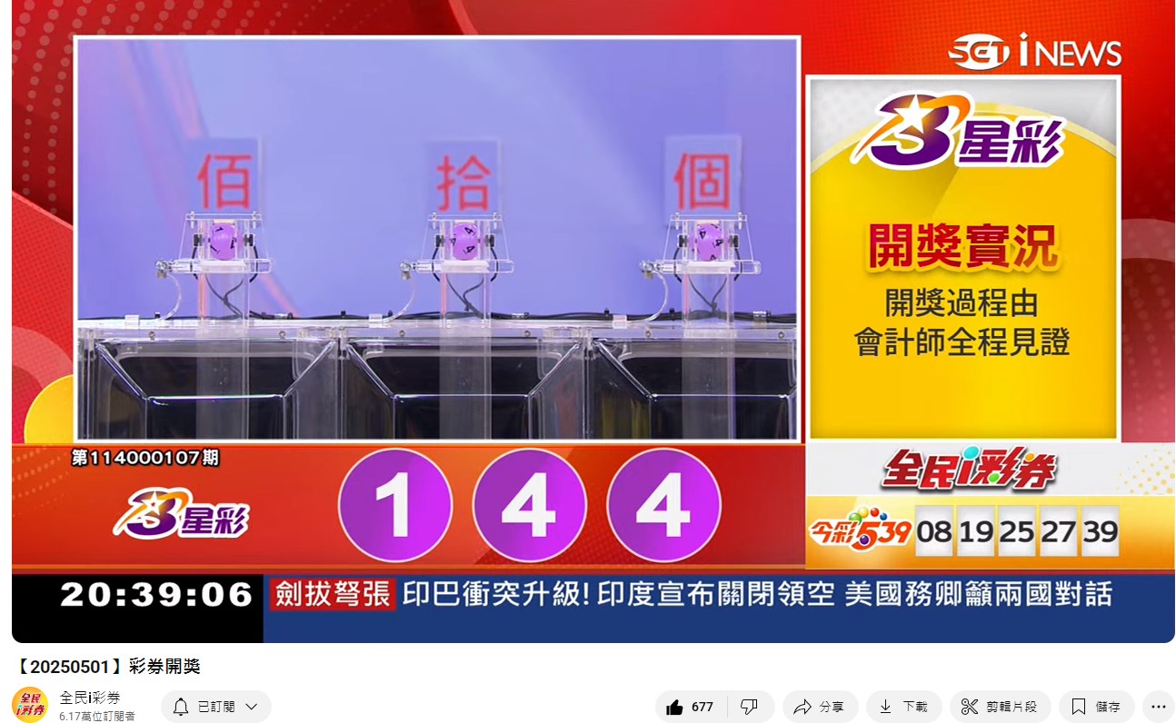 專區【全民i彩券】台灣彩券開獎實況轉播 威力彩、今彩539、三星彩、四星彩 |三立新聞網 SETN.com - YouTube