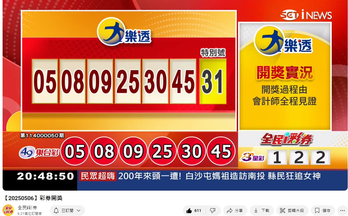 114年5月06日彩券開獎 來自全民i彩券YT [三立新聞網SETN][5月07日重播]