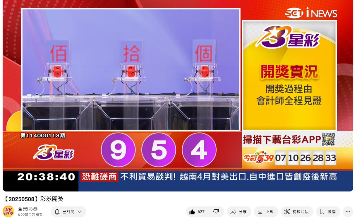 114年5月08日彩券開獎 來自全民i彩券YT [三立新聞網SETN][5月09日重播]