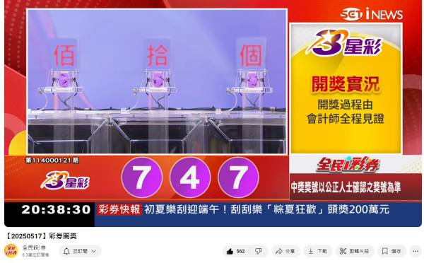 備註: 台彩因給全民兌獎方便,會在電視節目播完後,於全民i彩券YT官方頻道