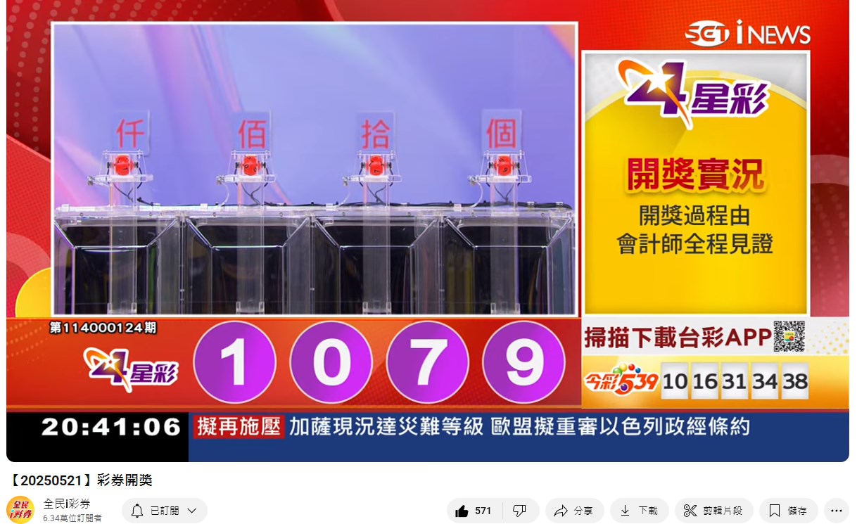 專區【全民i彩券】台灣彩券開獎實況轉播 威力彩、今彩539、三星彩、四星彩 |三立新聞網 SETN.com - YouTube