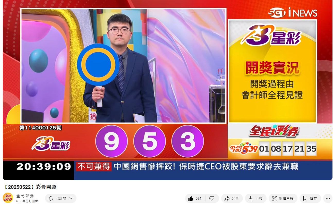 114年5月20日彩券開獎 來自全民i彩券YT [三立新聞網SETN][5月21日重播]