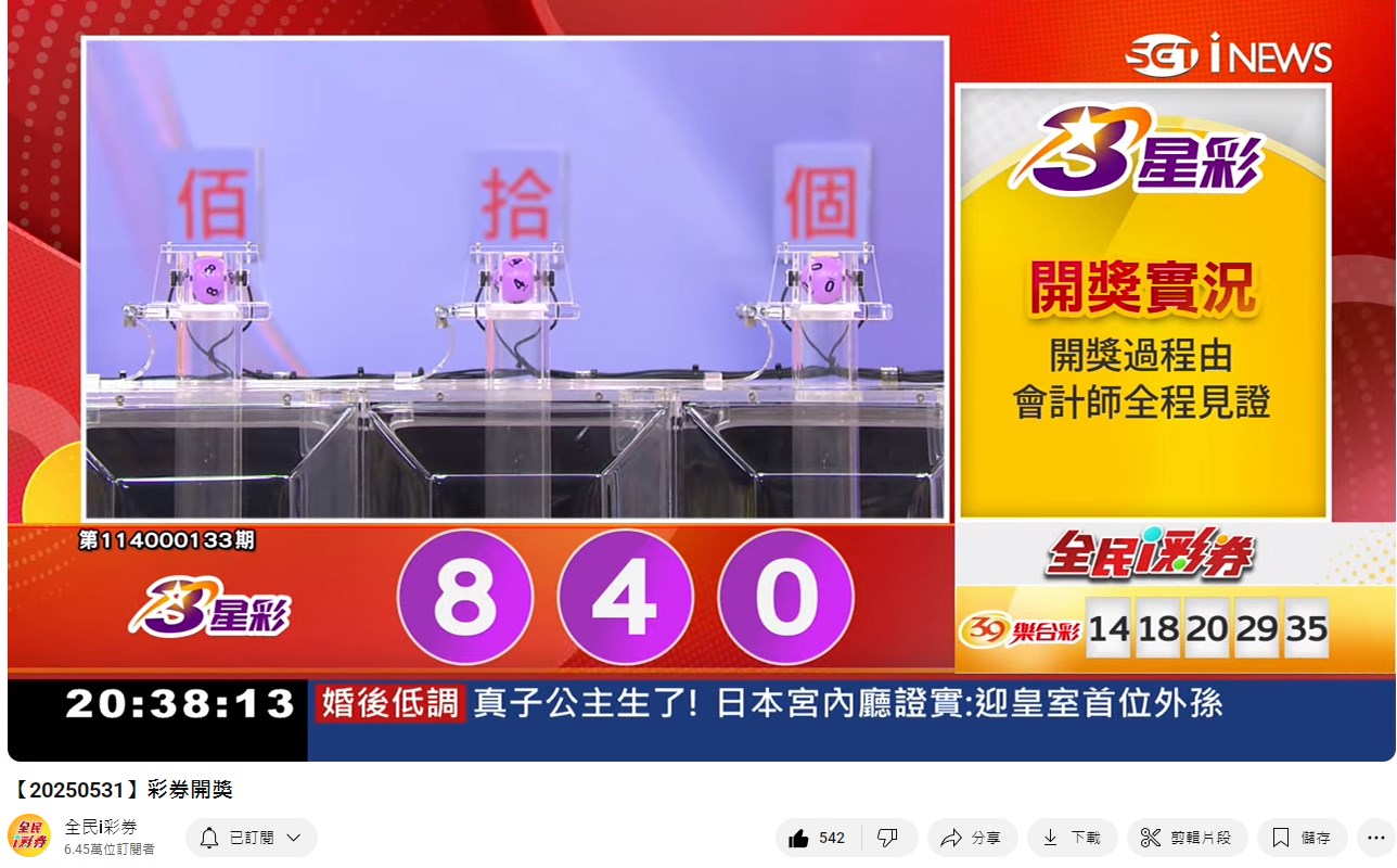 114年5月31日彩券開獎 來自全民i彩券YT [三立新聞網SETN][6月01日重播]