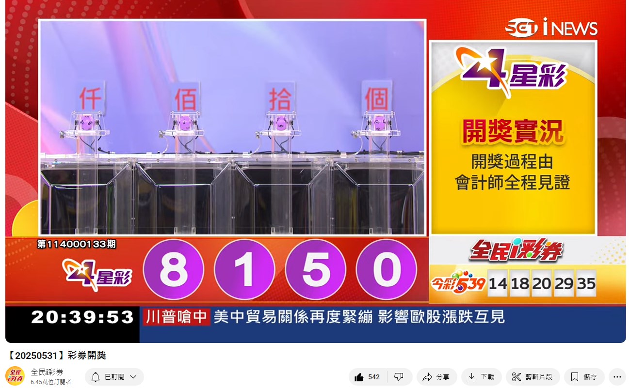 專區【全民i彩券】台灣彩券開獎實況轉播 威力彩、今彩539、三星彩、四星彩 |三立新聞網 SETN.com - YouTube