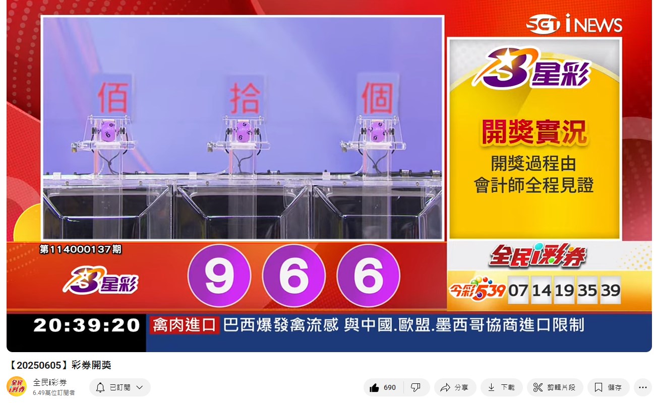 114年6月05日彩券開獎 來自全民i彩券YT [三立新聞網SETN][6月06日重播]
