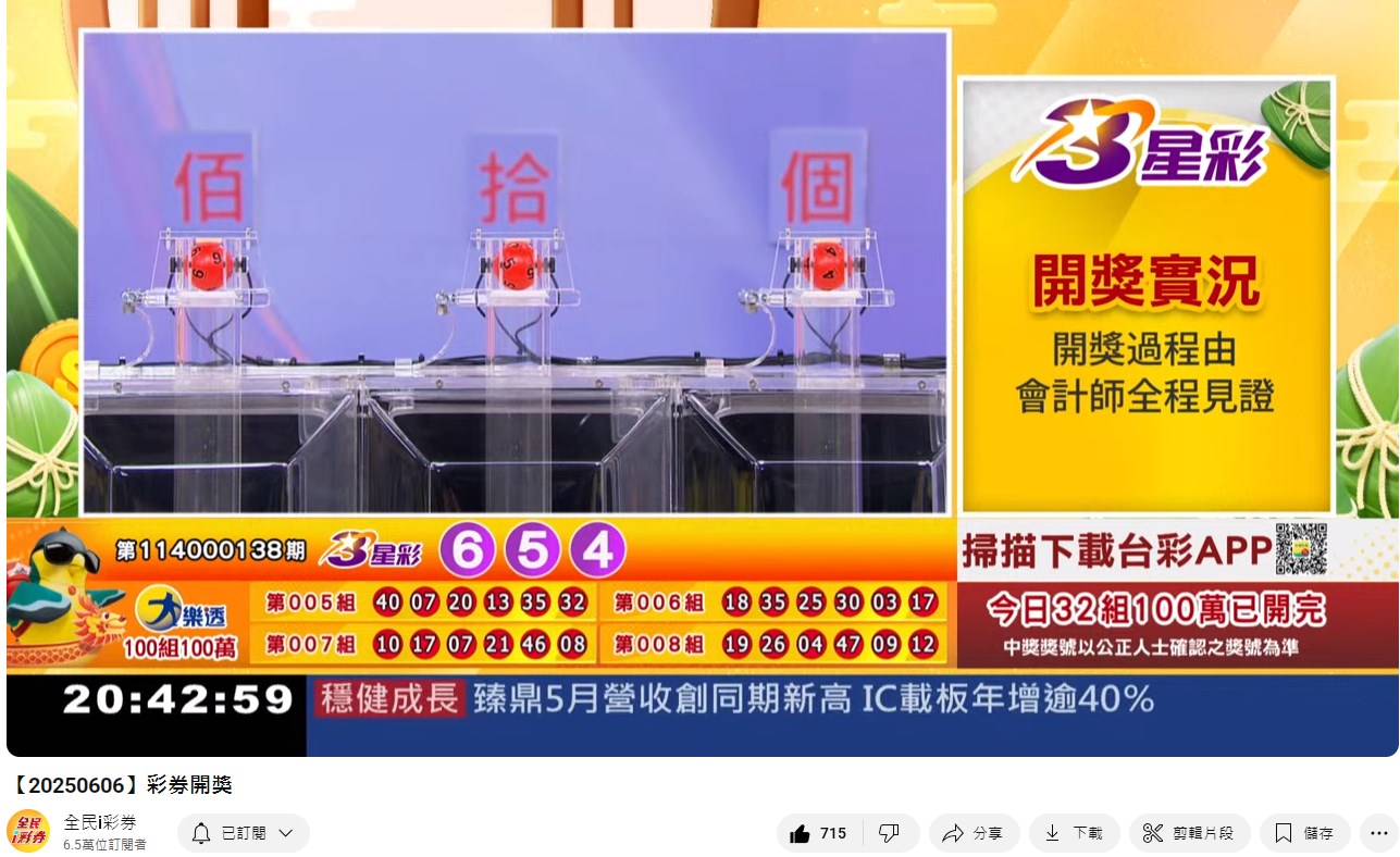 114年6月06日彩券開獎 來自全民i彩券YT [三立新聞網SETN][6月07日重播]