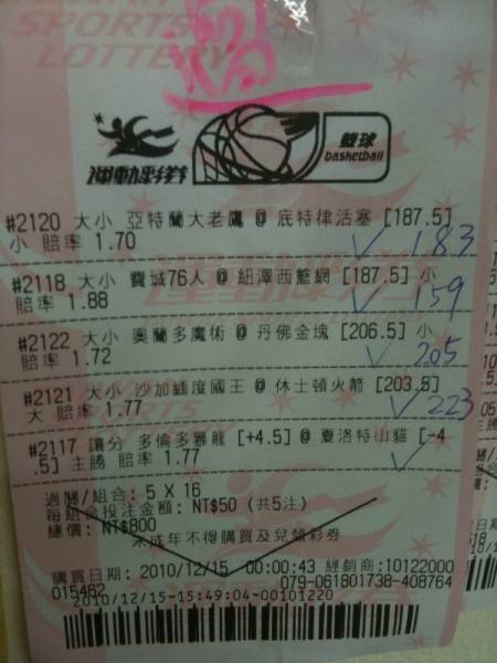 還好簽大小分的有過一張5關過5關