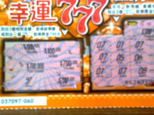 我昨天去彩券行時他那剩下3張幸運777,我買ㄋㄧ張就中ㄋ700元 我好幸運