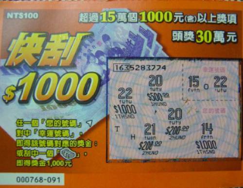 討論版列表 » 刮刮樂討論版 » [分享] (11-22) 狂賀... 快刮1000中1000 編號:000768-091