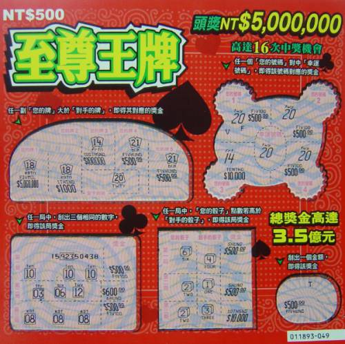 討論版列表 » 刮刮樂討論版 » [分享] (12-20) 狂賀... 至尊王牌中5000 編號011893-049