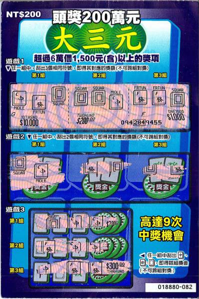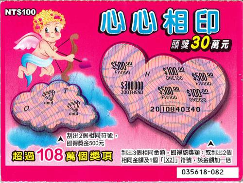 兩顆價值NTD500的鑽石,六中三中NTD500的獎金,