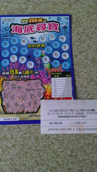 討論版列表 » 刮刮樂討論版 » [分享] (03-21) 最新[海底尋寶][2000] 回應本話題 發表新話題