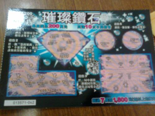 我昨天買ㄋ一張璀璨鑽石 中ㄋ2000元,還是全壘打