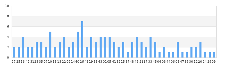| 2025年 [ 34 ]號球開出的歷史記錄 |