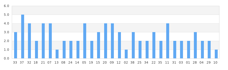 | 2025年 [ 06 ]號球開出的歷史記錄 |
