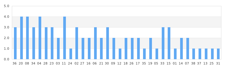 | 2025年 [ 22 ]號球開出的歷史記錄 |