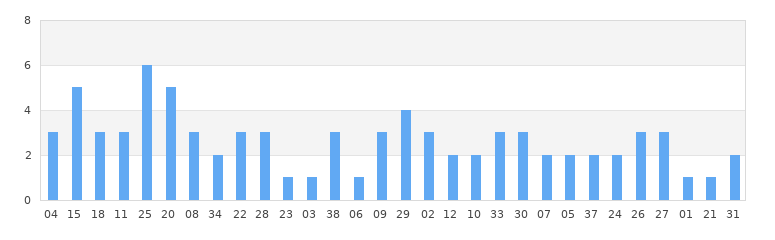 [威力彩] 查看36號球的跳期分析